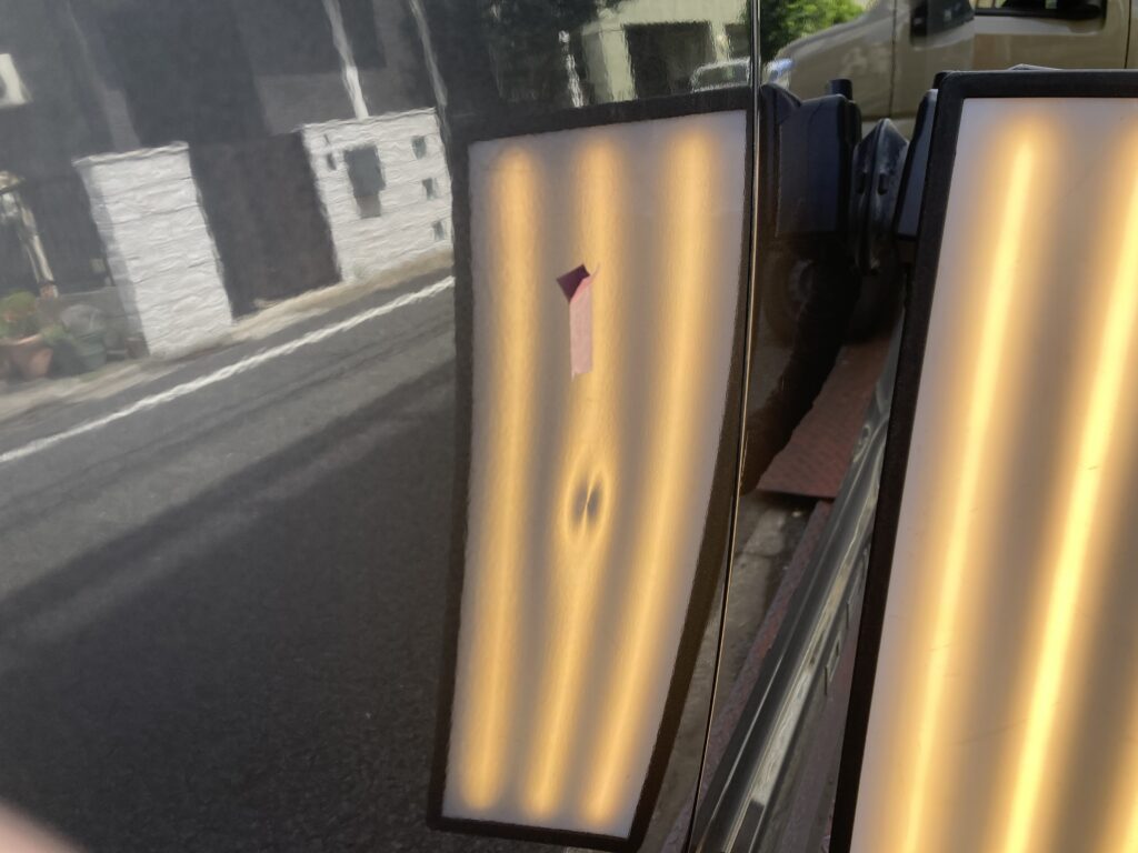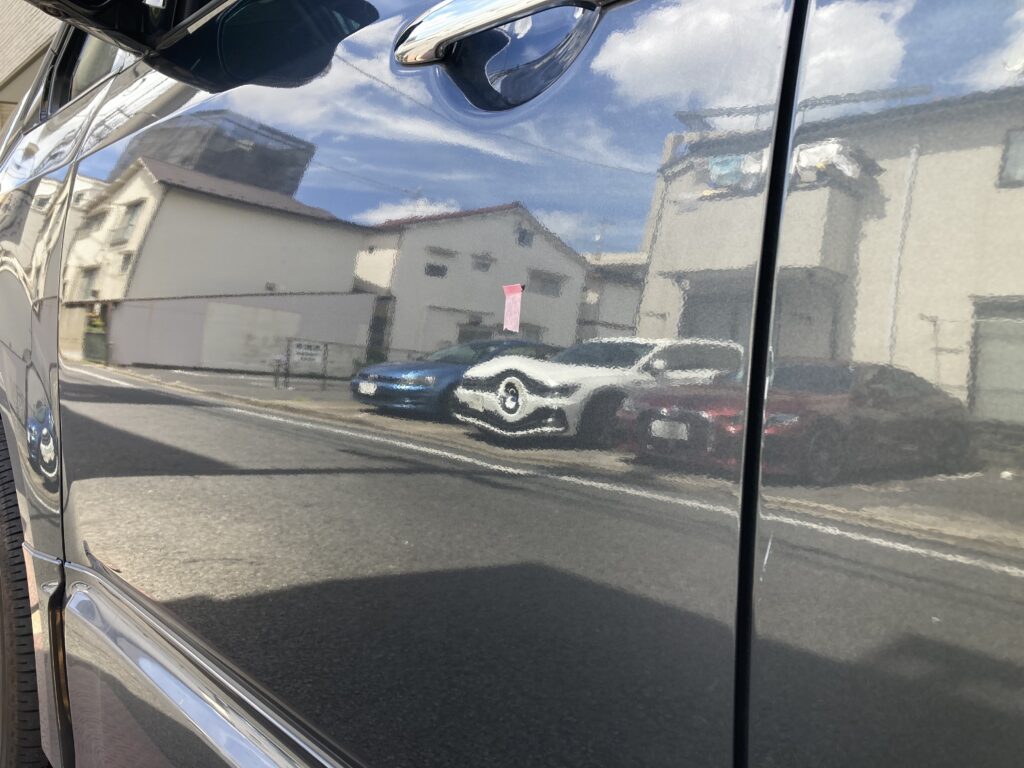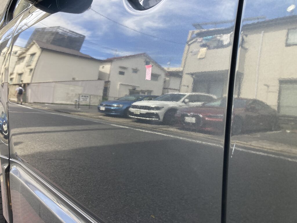 施工前 背景を写し込ませると白い車が歪んで見えます。
