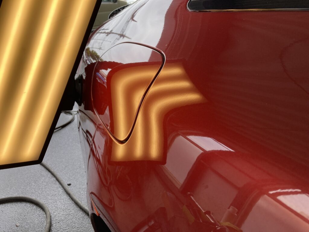 明らかに給油口を開けた時に当たってしまっているようですね。