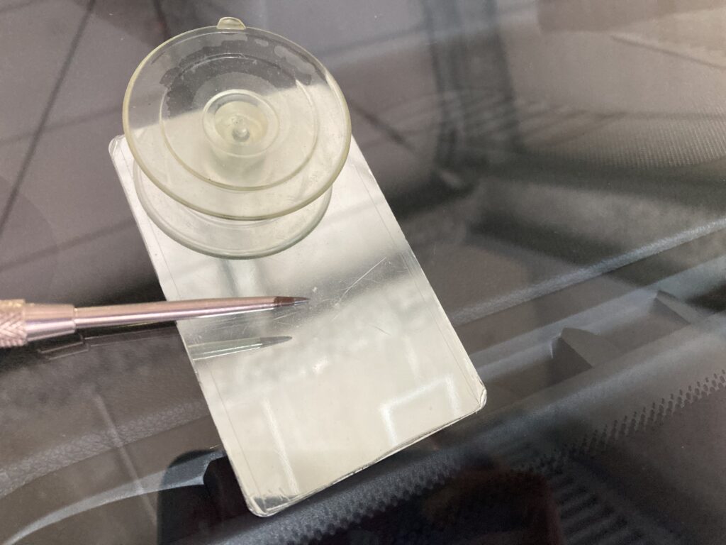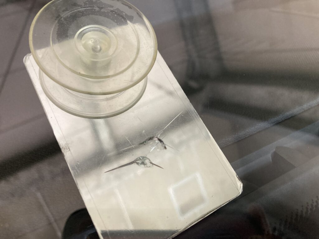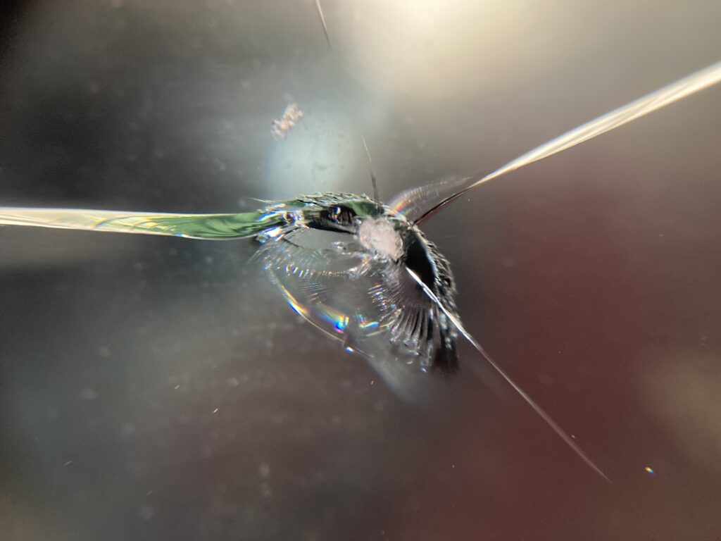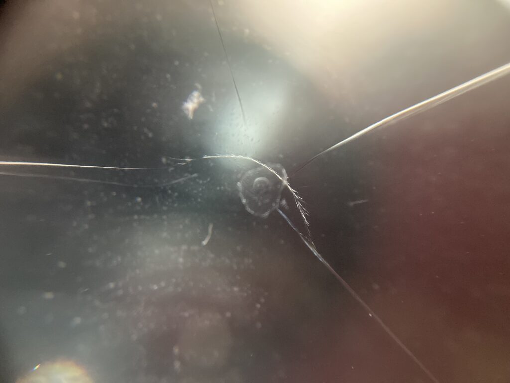 飛び石によって、サイズは大きめのひびが出来てしまっています。