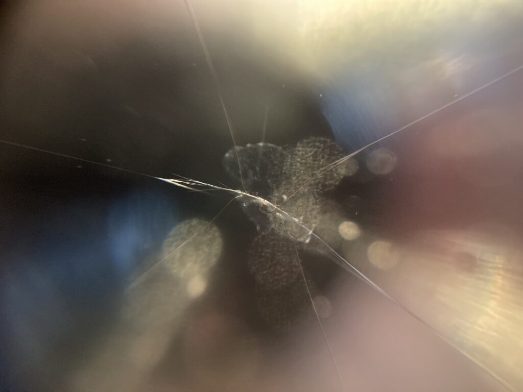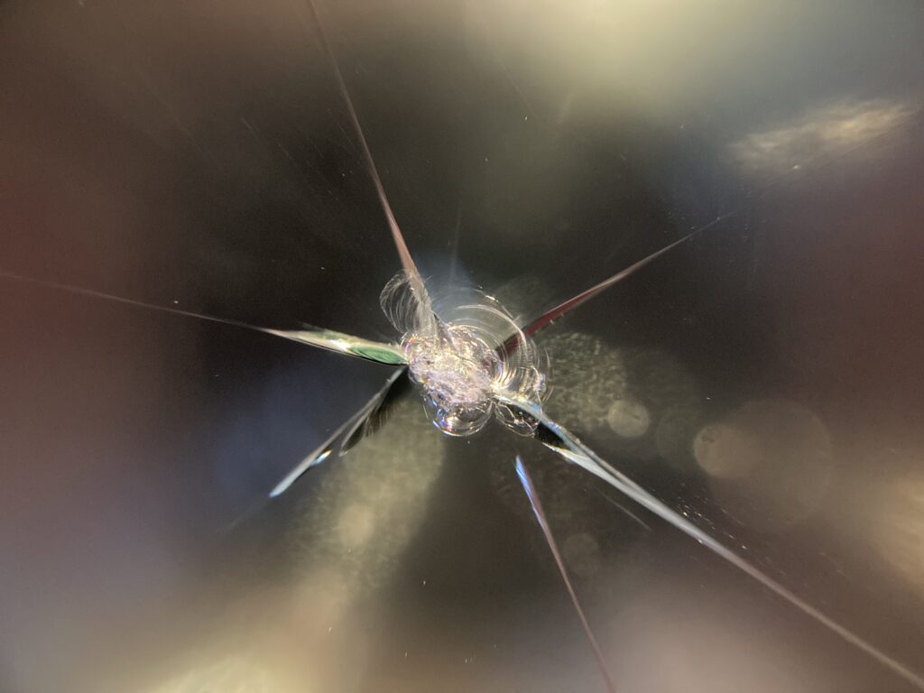 飛び石によって助手席側にヒビが出来てしまっています。