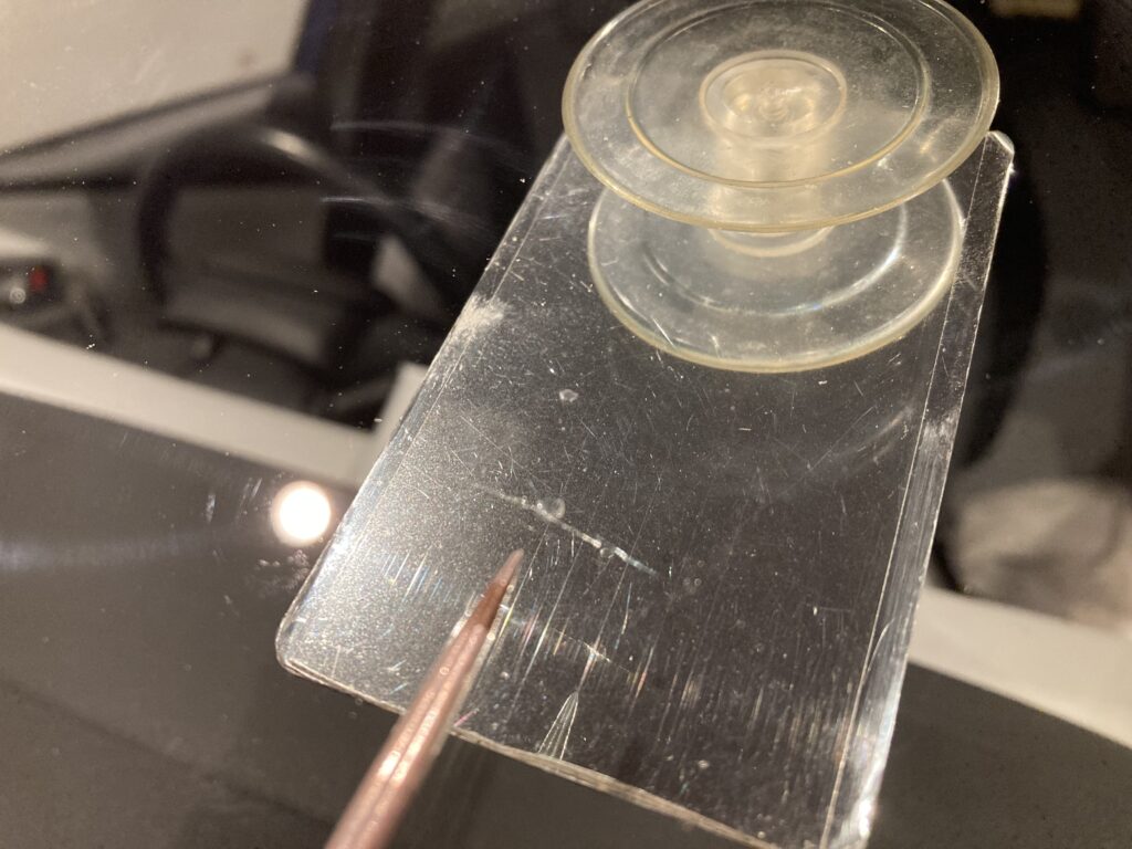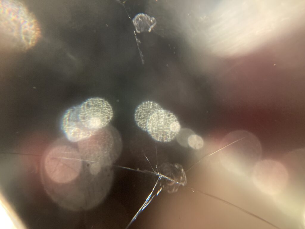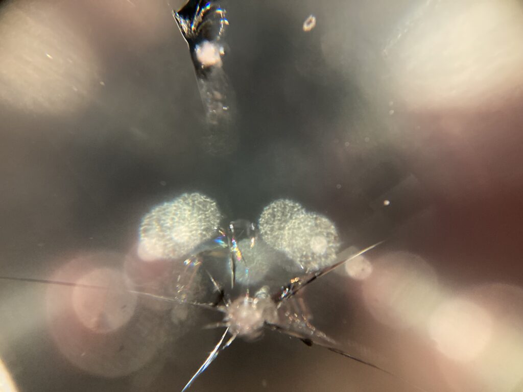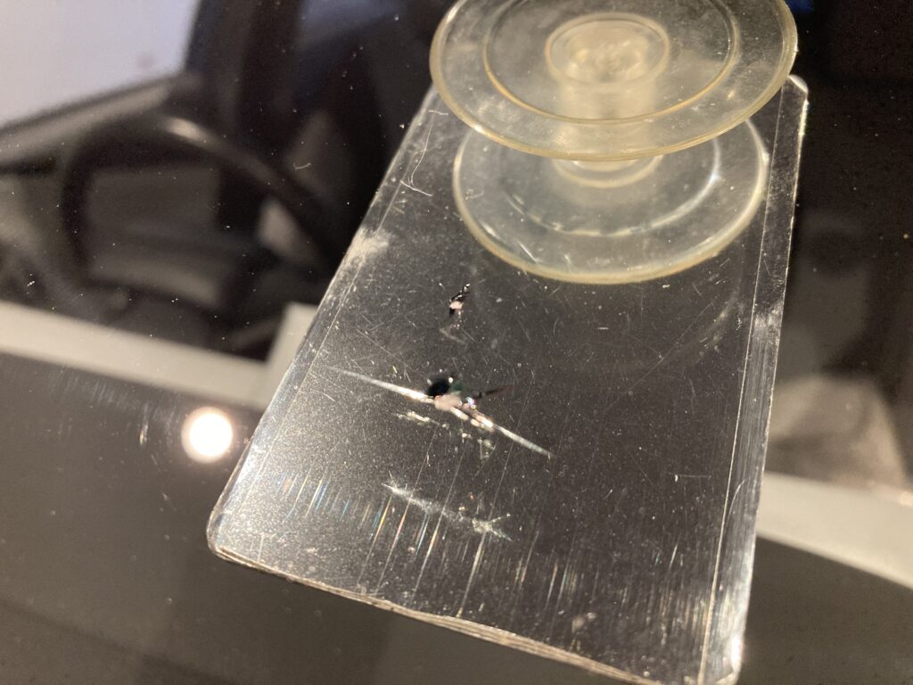 よーく観察すると、衝撃点(石が当たった所)が2ヶ所あります。