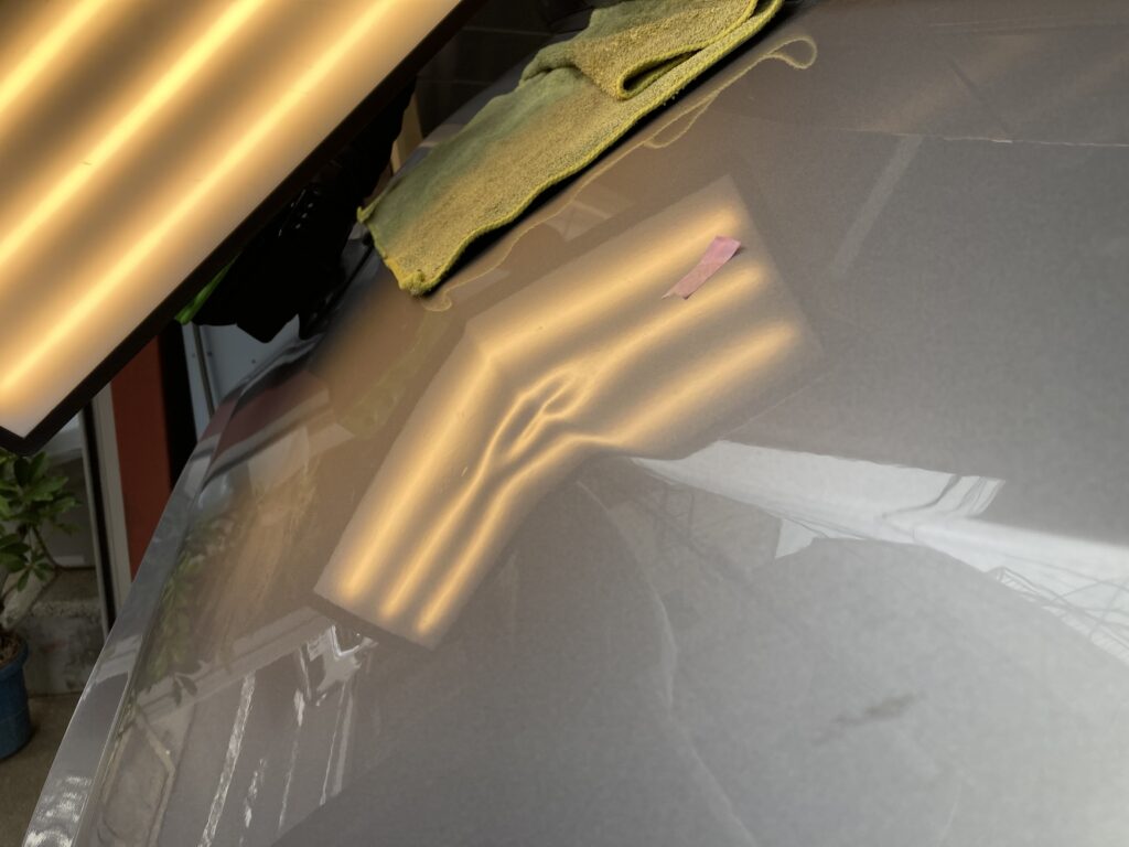 リヤゲートのプレスライン上に出来てしまったヘコミのリペアになります。