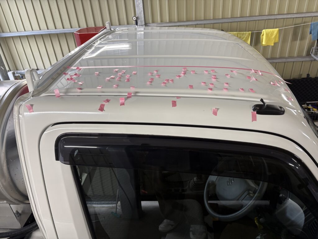 ルーフ部分は3分の1程度だけ貼ってますが、全体的に凹んでいます。